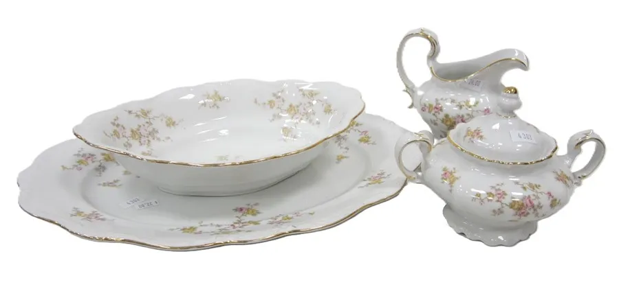 JOHANN HAVILAND BAVARIA GERMANY PORCELAIN: LARGE PLATTER, SERVING BOWL, CREAMER & SUGAR