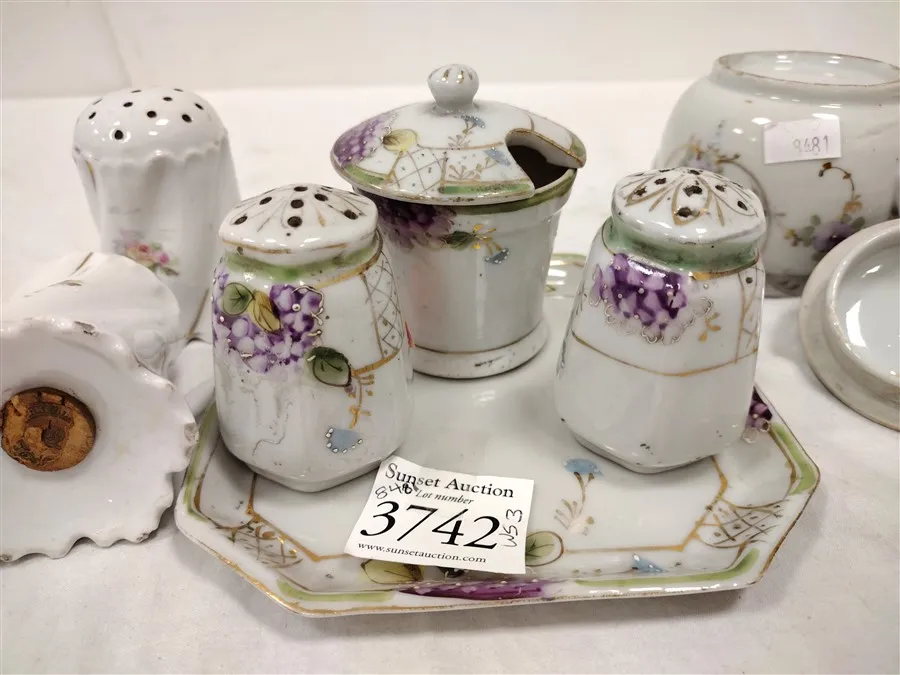 VINTAGE PORCELAIN SALT & PEPPERS, SUGAR BOWLS, AND CONDIMENT SET