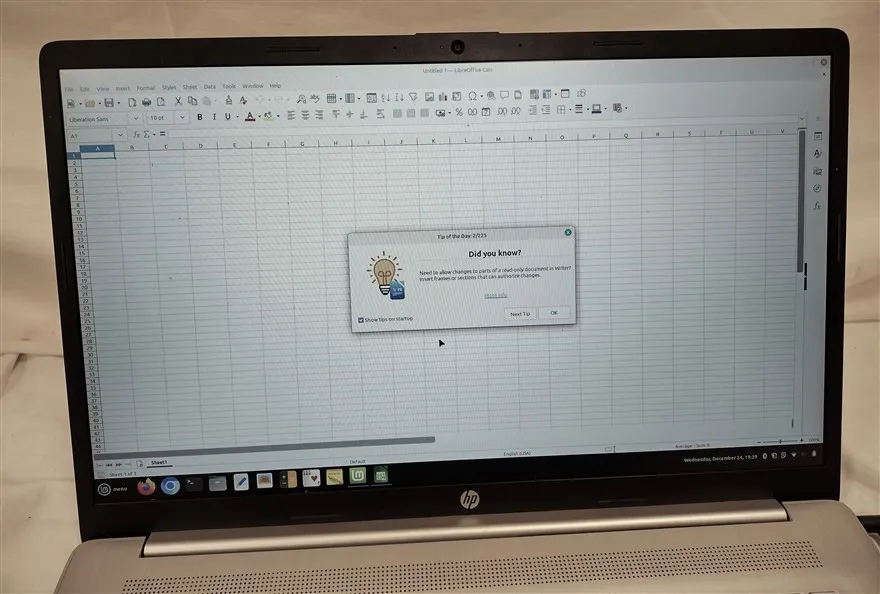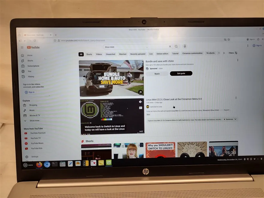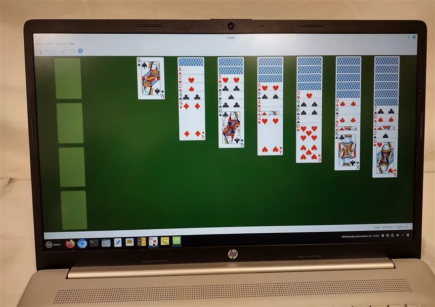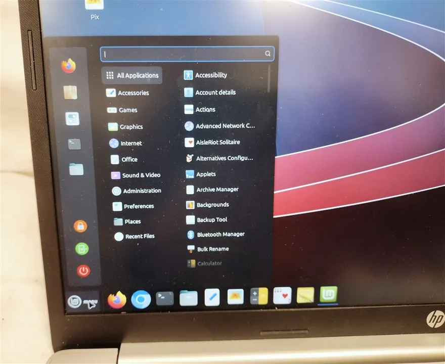 HP Laptop.  Has good battery.  Is running on Linux Mint operating system.