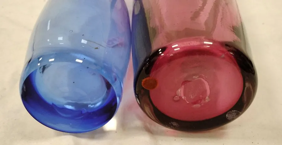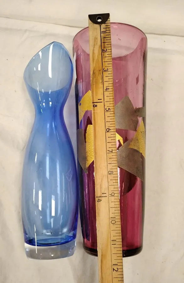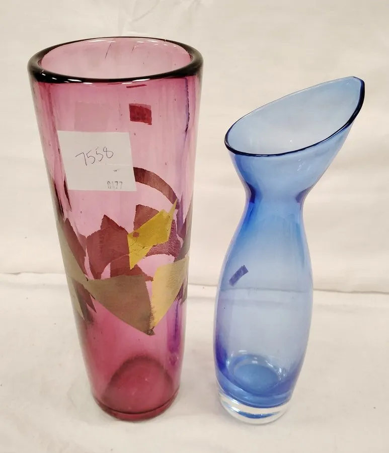 TWO ART GLASS VASES, LARGER VASE HAS UNPOLISHED PONTIL 11.5" TALL