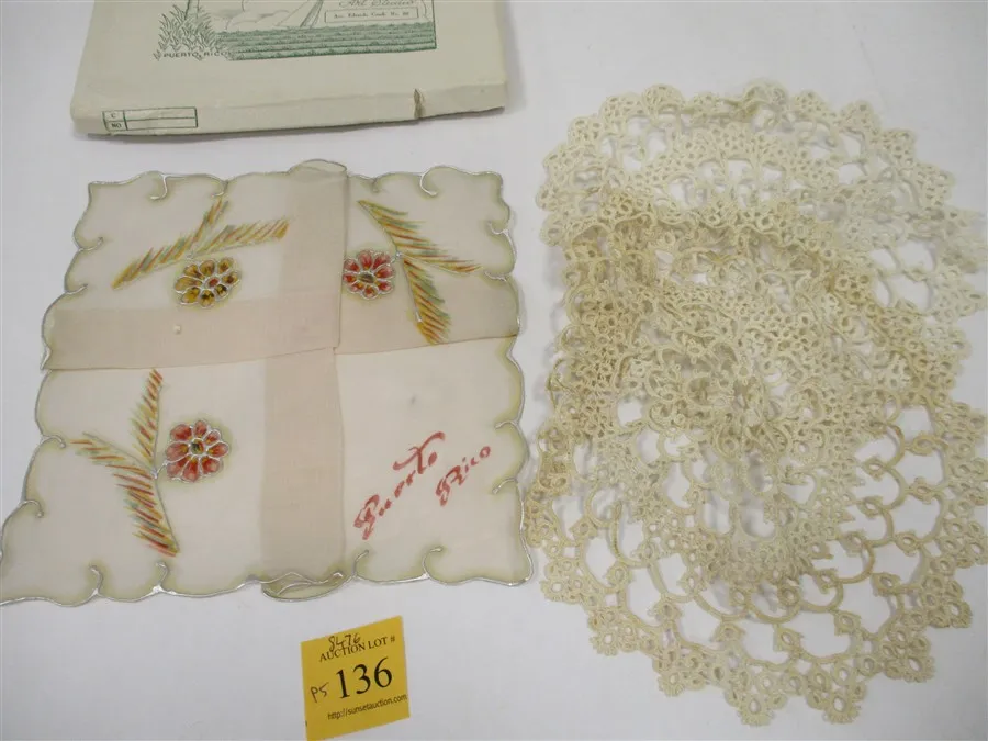 MONMOR HAND MADE HANKIES IN BOX, CROCHETED DOILIES