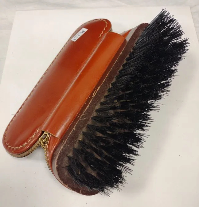 LEATHER ZIPPERED CONTAINER, ALL CONTENTS STILL THERE