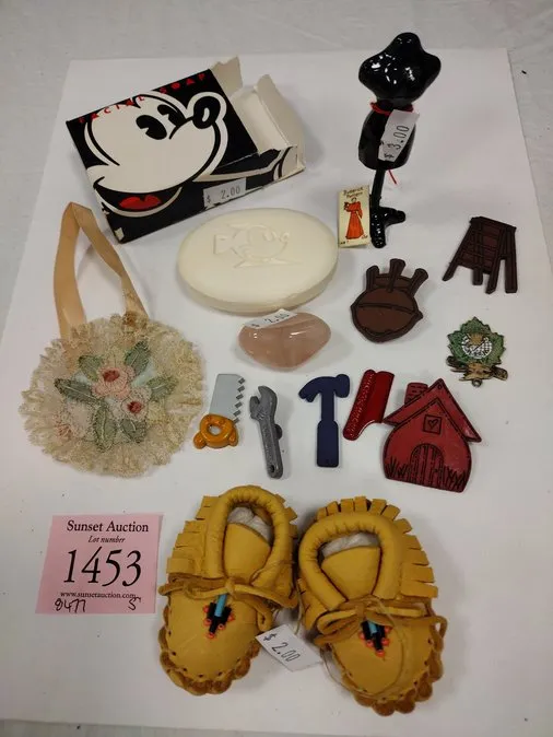 SMALL COLLECTIBLES: MINI MOCASSINS, DISNEY SOAP, BUTTONS AND MORE