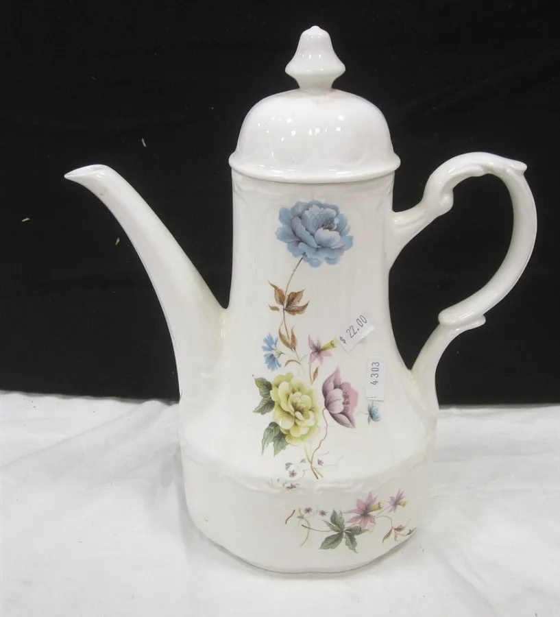 J & G MEAKIN ENGLISH PORCELAIN COFFEE SERVER. HAS TINY GLAZE FLAW ON SPOUT