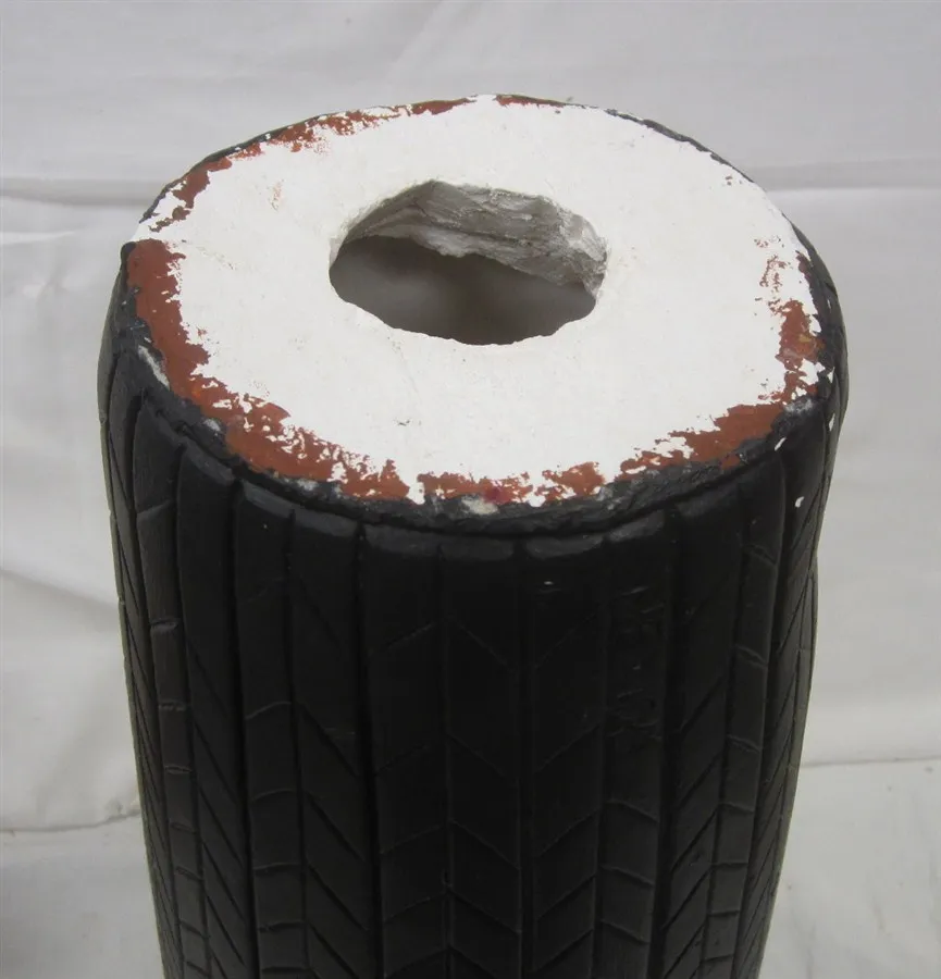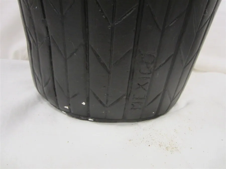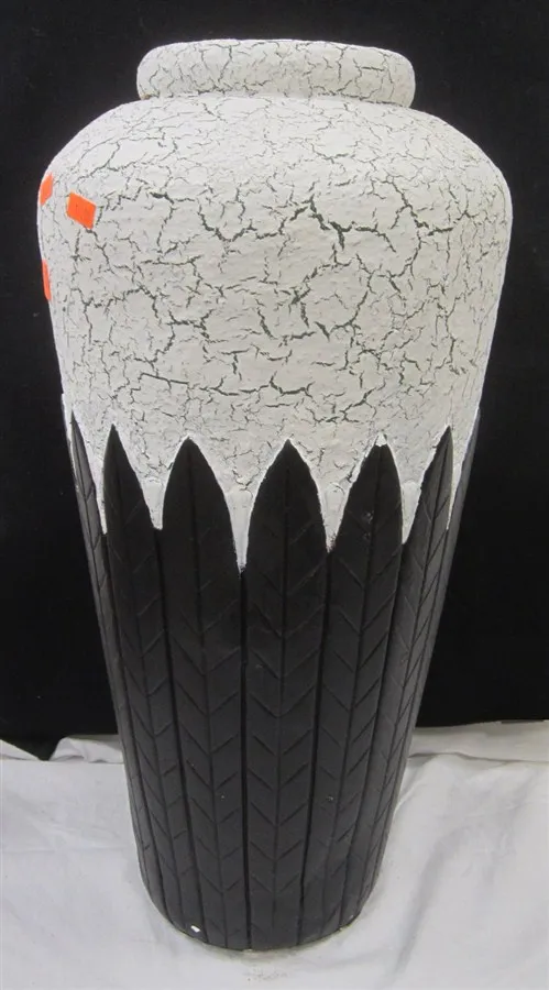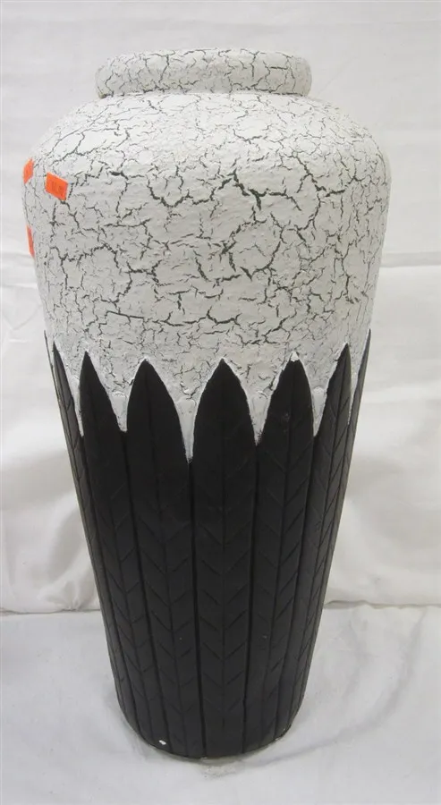 LARGE TEXTURED PLASTER FLOOR VASE, BLACK & WHITE.  HOLE IN BOTTOM.  SOME PAINT CHIPS