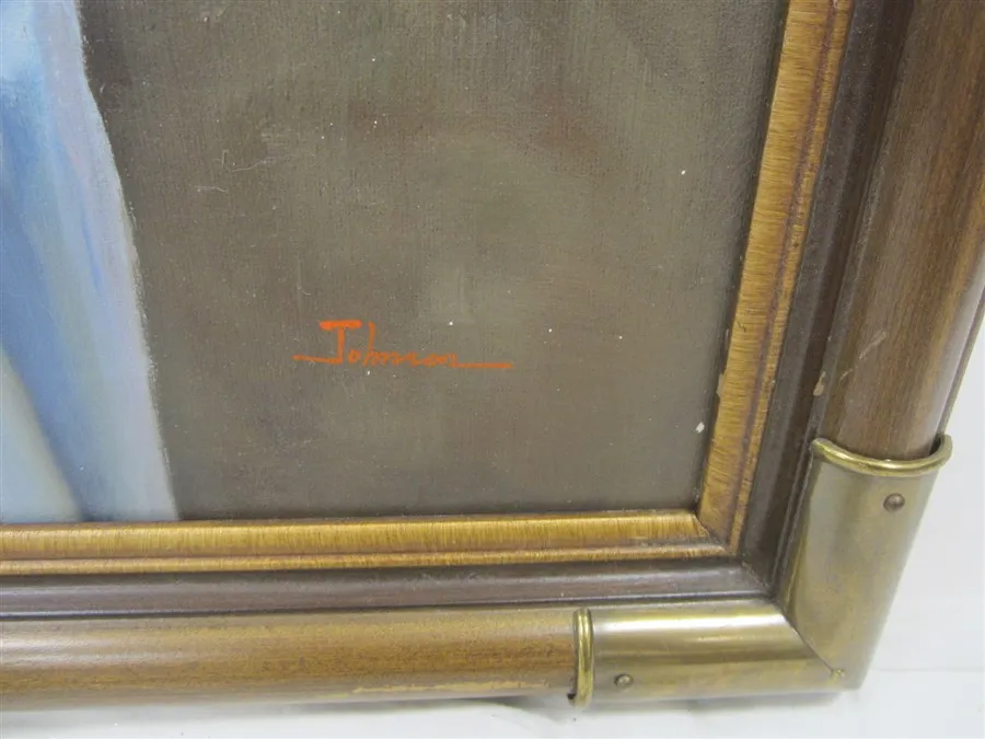 PAINTING ON CANVAS OF MOTHER AND CHILD SIGNED JOHNSON, WITH FRAME. SMALL HOLE IN CANVAS