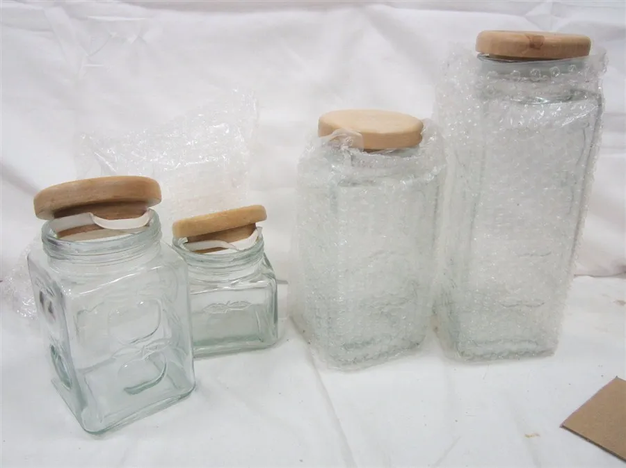 SET FOUR EMBOSSED APPLE GLASS CANISTERS