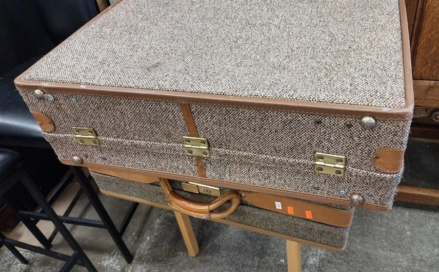 THREE HARTMANN LUGGAGE SUITCASES. ALL SHOW WEAR. DIFFICULT TO CLOSE