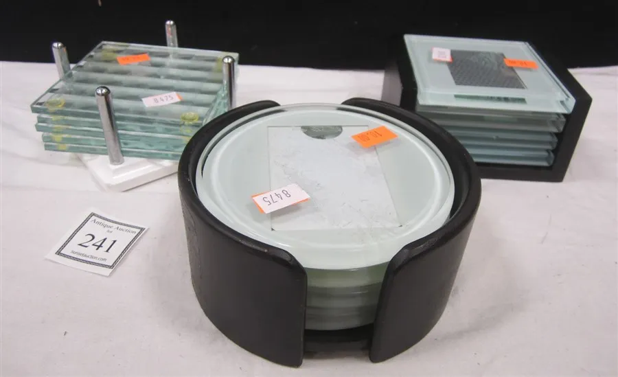 THREE SETS OF MODERN STYLE GLASS COASTERS