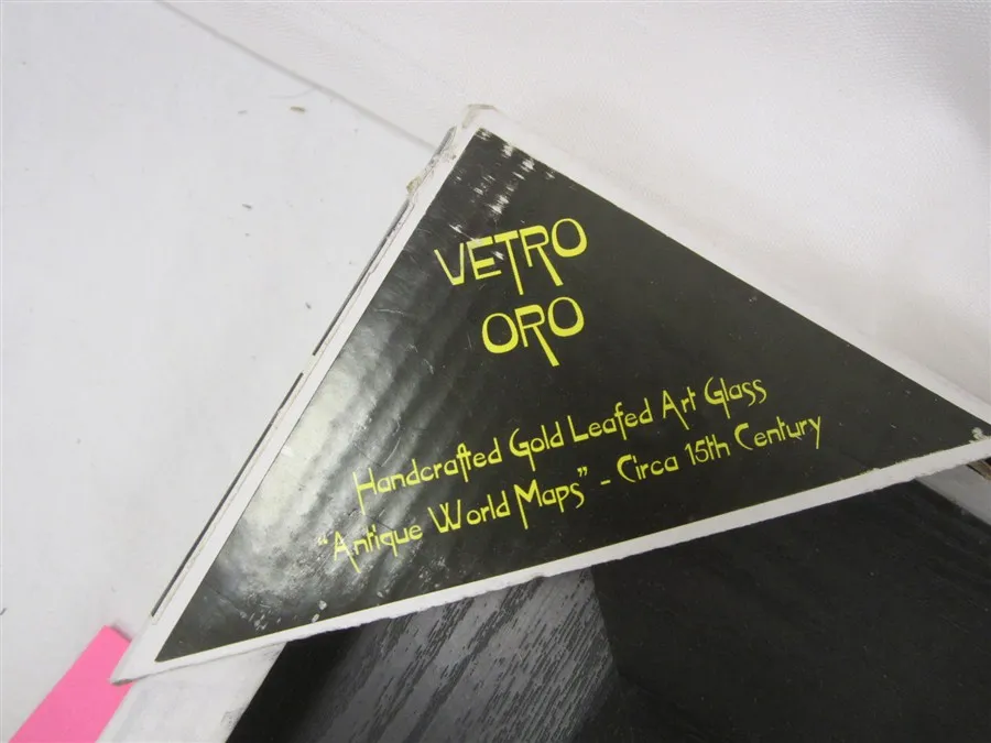 TWO NEW IN PACKAGE FRAMED ART GLASS PLATES OF 18TH CENTURY WORLD MAPS