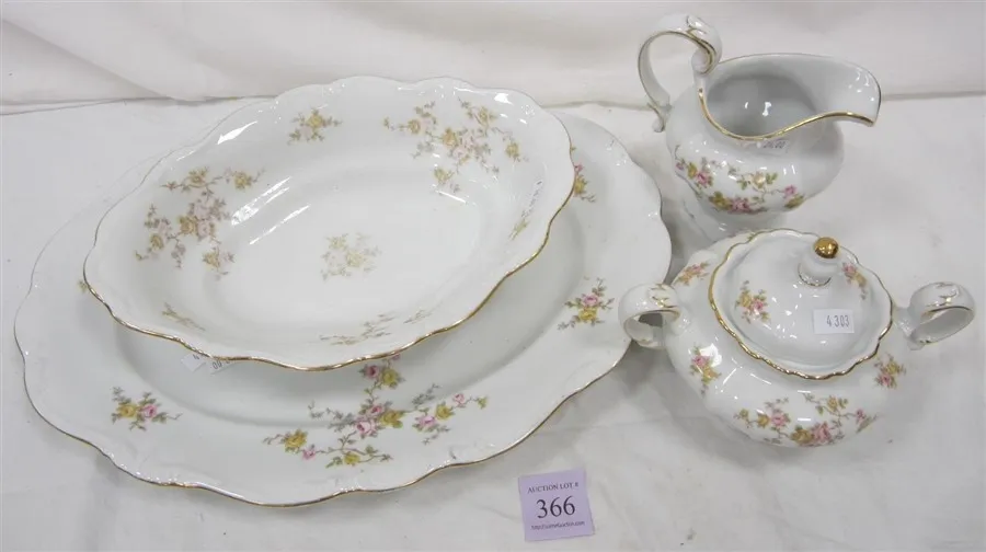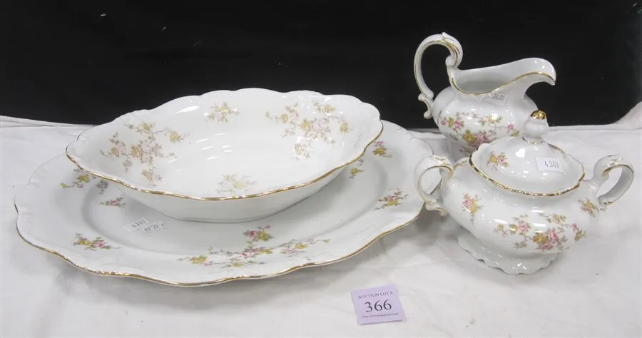 JOHANN HAVILAND BAVARIA GERMANY PORCELAIN: LARGE PLATTER, SERVING BOWL, CREAMER & SUGAR
