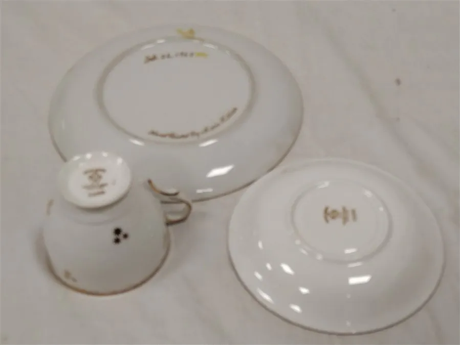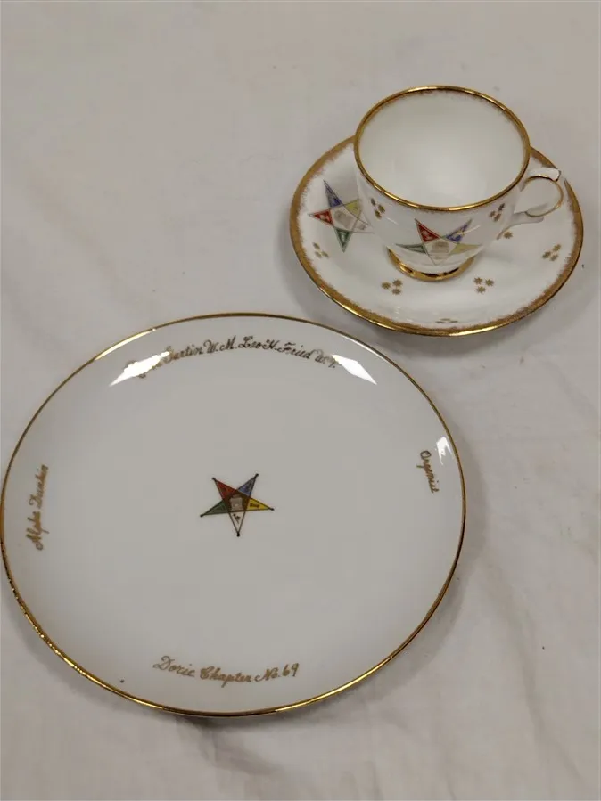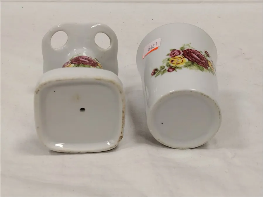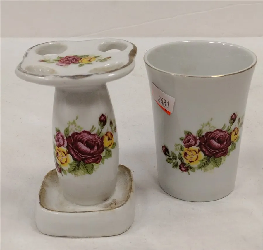 VINTAGE PORCELAIN CHINESE VASE, ROSE THEME BATHROOM SET, FATERNAL TEACUP SAUCER AND PLATE SET