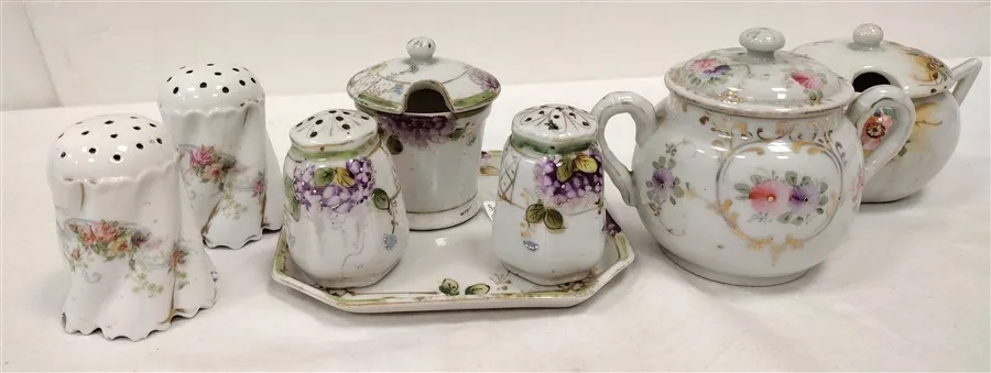 VINTAGE PORCELAIN SALT & PEPPERS, SUGAR BOWLS, AND CONDIMENT SET