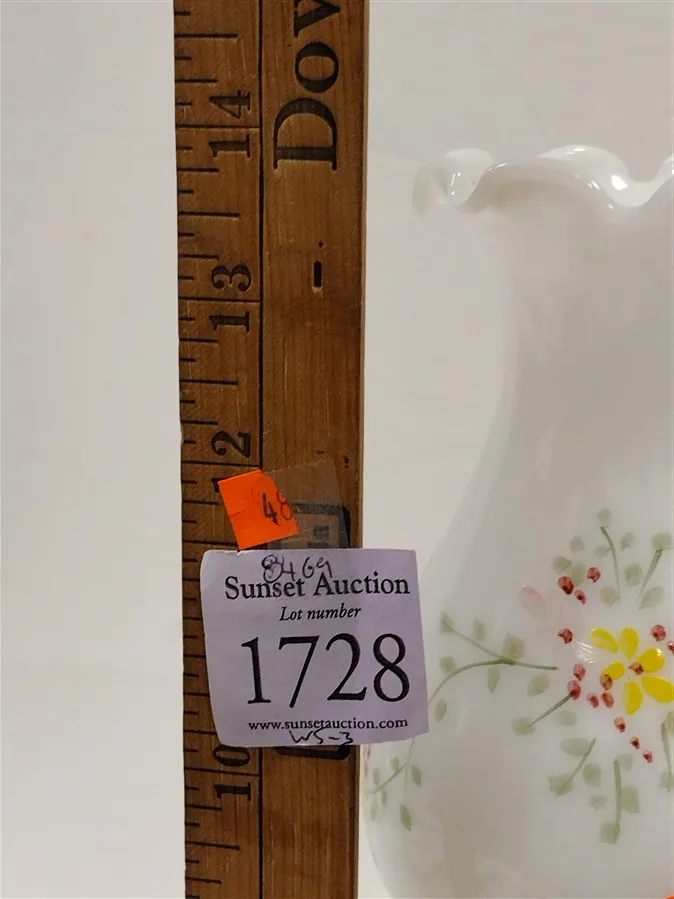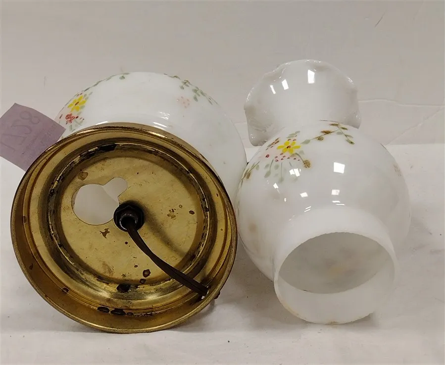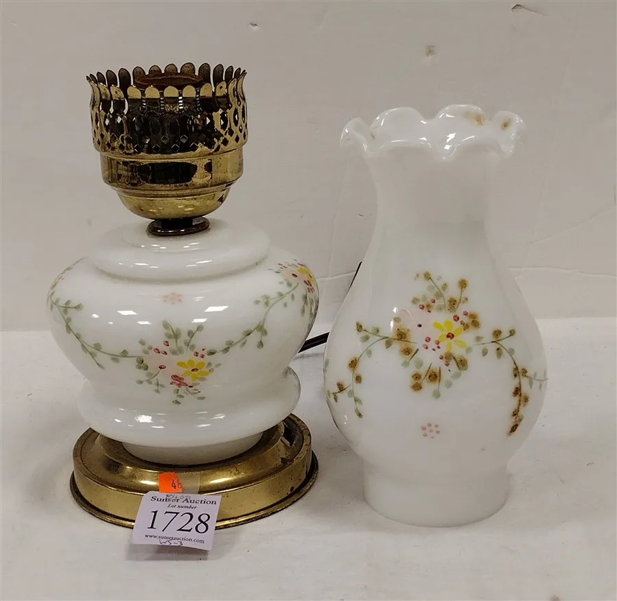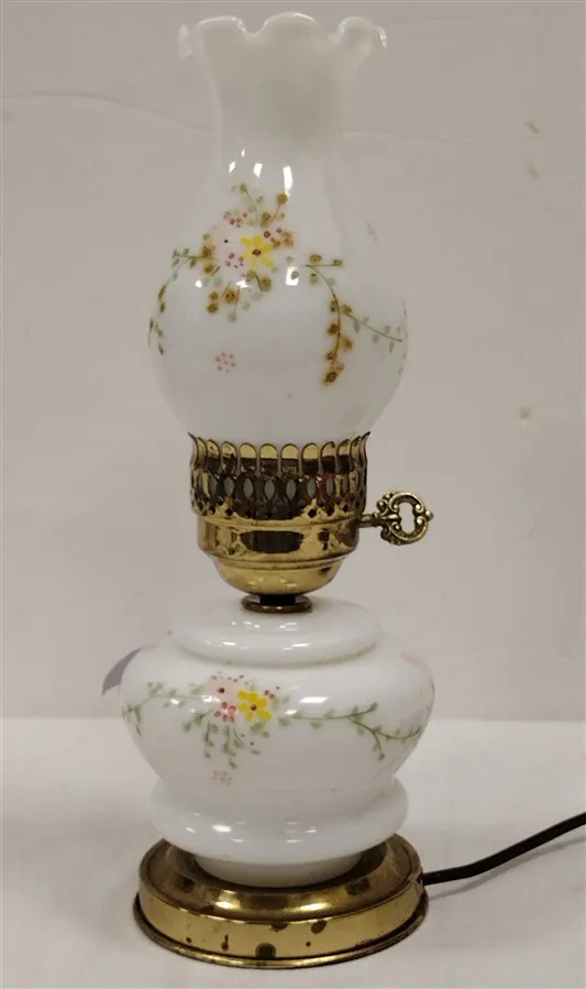 WHITE GLASS LAMP WITH PAINTED DIRT MOTIF