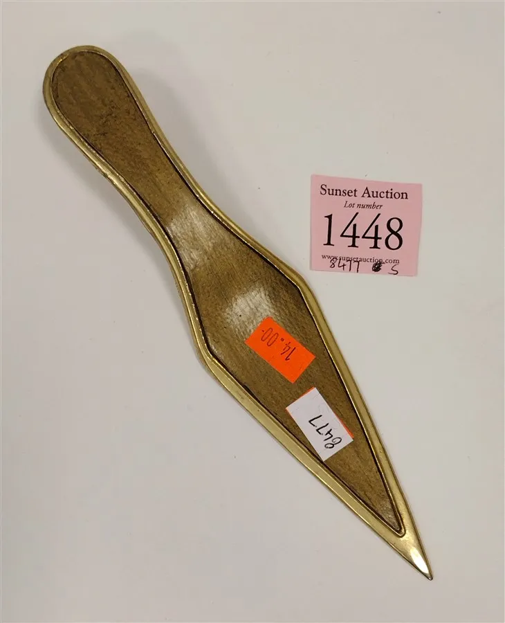 HEAVY BRASS DESK TOP LETTER OPENER, PAPERWEIGHT