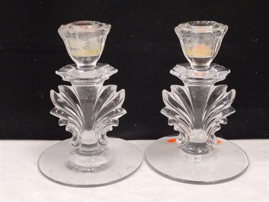 CANDLE STICKS, COMPOTE, FOOD MOLD, FOOTED LOW BOWL