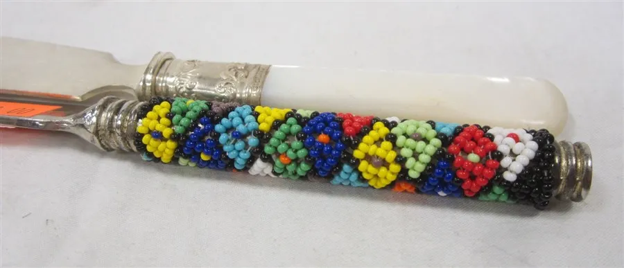 CHEESE KNIFE WITH BEADED HANDLE AND BUTTER KNIFE WITH MOP HANDLE, AMERICAN CUTLERY CO