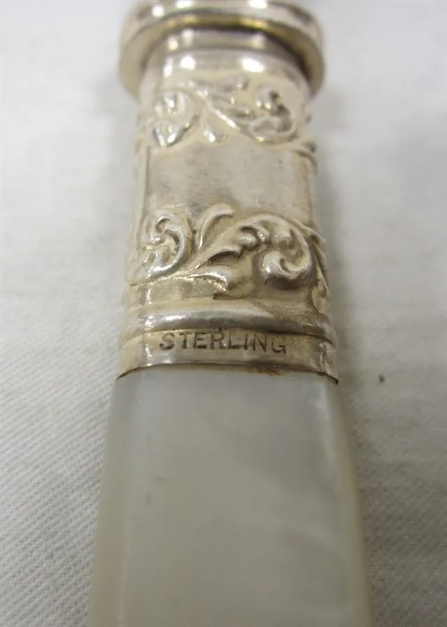 CHEESE KNIFE WITH BEADED HANDLE AND BUTTER KNIFE WITH MOP HANDLE and STERLING BAND, AMERICAN CUTLERY CO