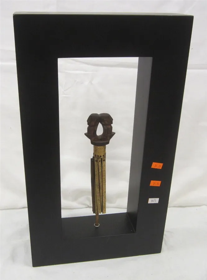 DECORATIVE BATAK BAMBOO SUMATRA CALENDAR WITH TWO FIGURES WITH DECORATIVE STAND