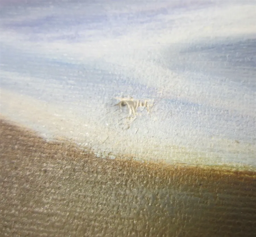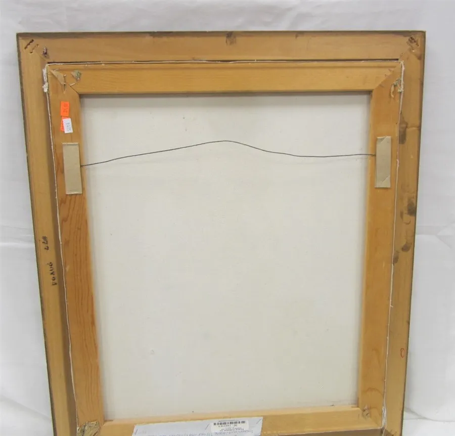 PAINTING ON CANVAS OF MOTHER AND CHILD SIGNED JOHNSON, WITH FRAME. SMALL HOLE IN CANVAS