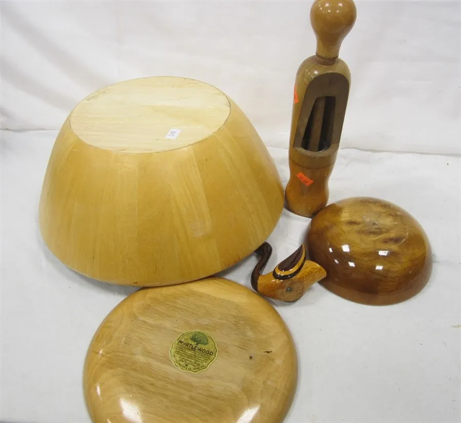 WOOD LOT: SALAD BOWL, WINE CORKER, SMALL BOWL, TRAY AND WOODEN BIRD
