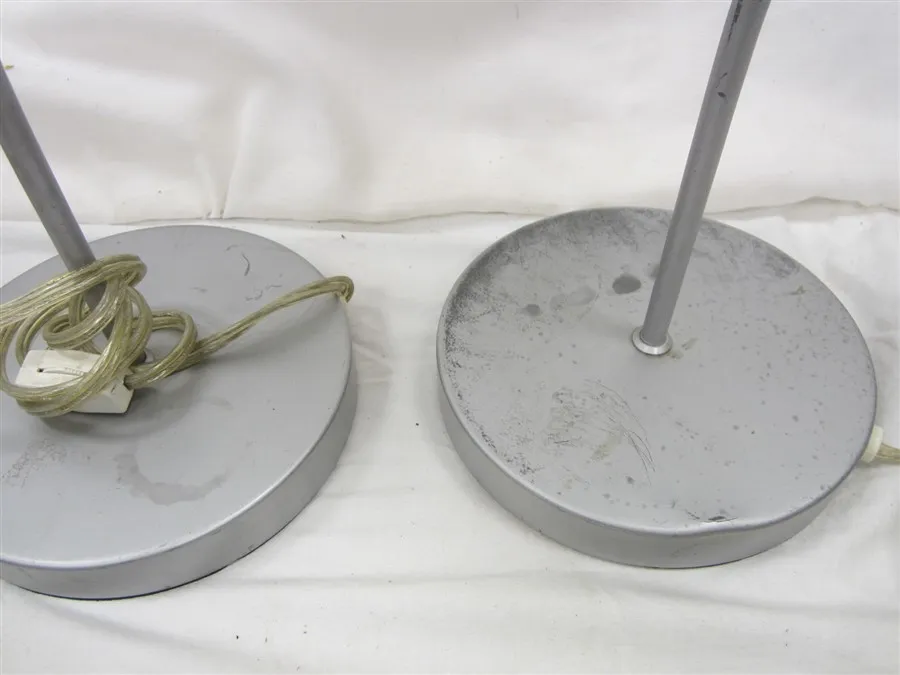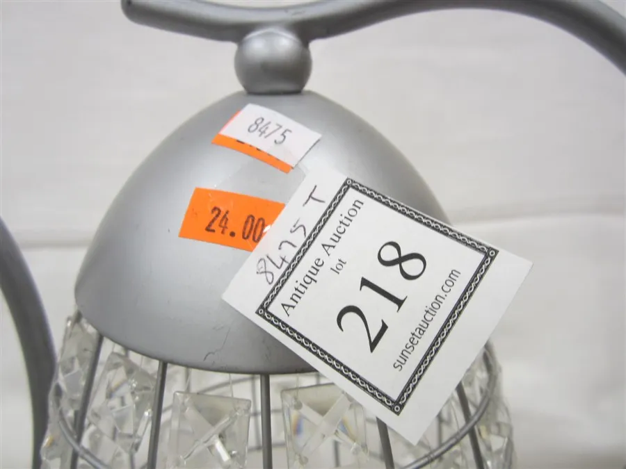 PAIR OF CONTEMPORARY TABLE LAMPS WITH CRYSTAL STYLE SHADES.  ONE LAMP HAS DENT AND STAIN ON BASE