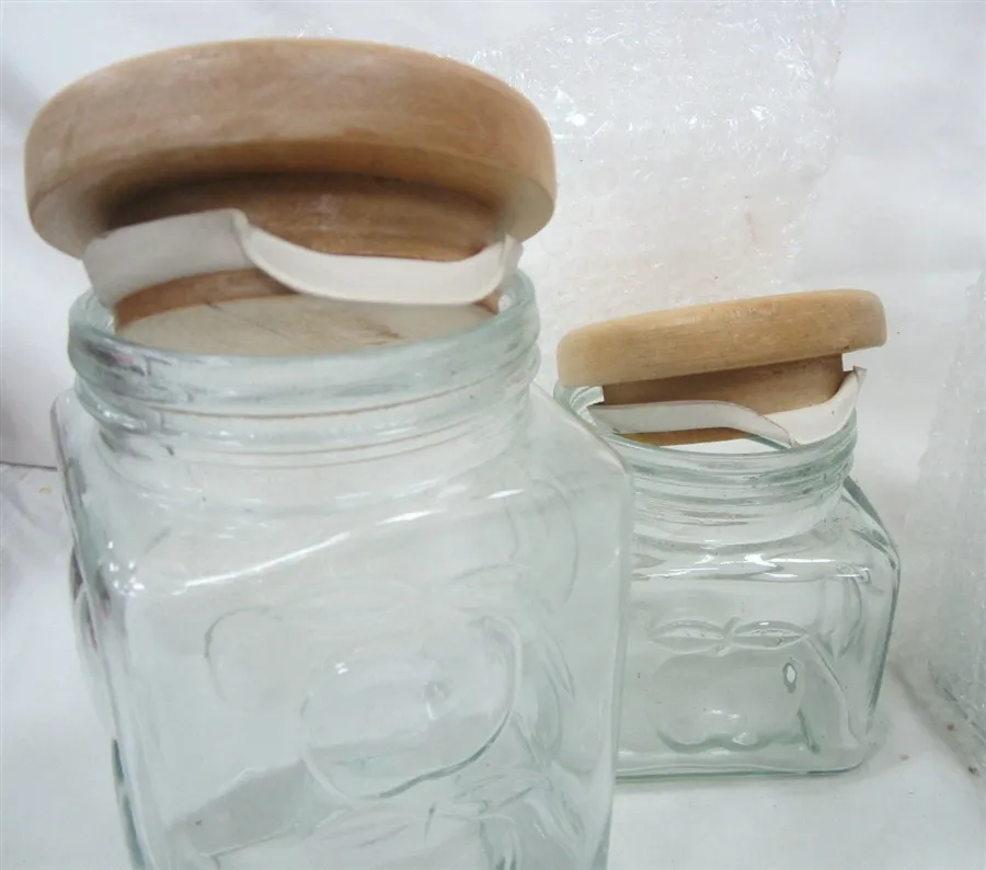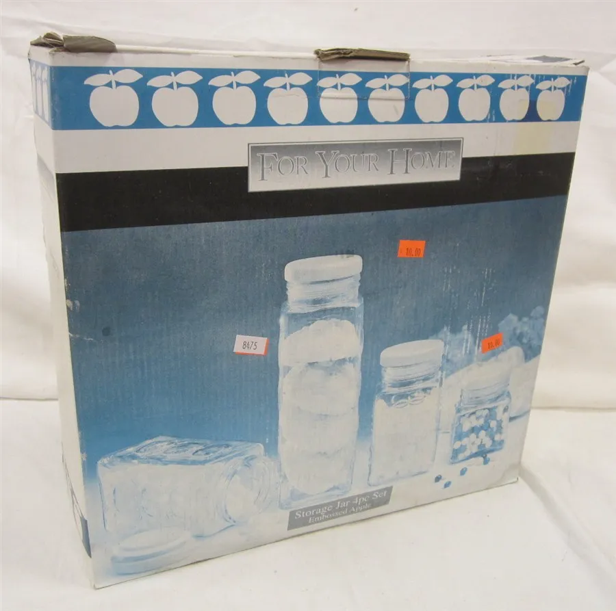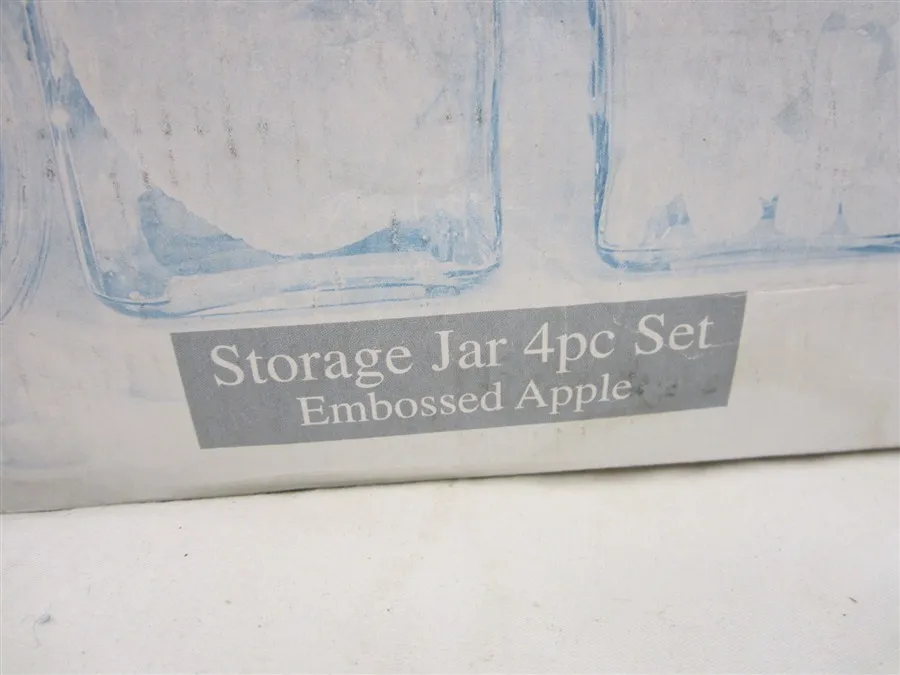 SET FOUR EMBOSSED APPLE GLASS CANISTERS