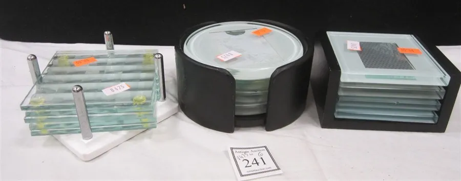 THREE SETS OF MODERN STYLE GLASS COASTERS