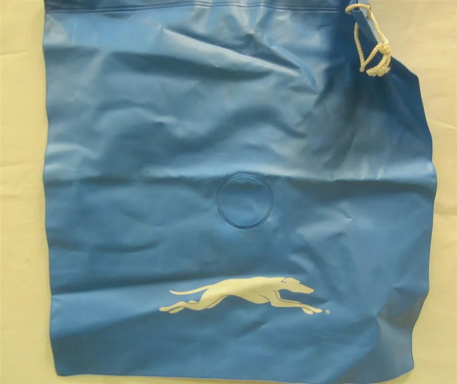 VINTAGE BRITISH AIRWAYS VINYL BAG, GREYHOUND PILLOW/TOTE, BAG