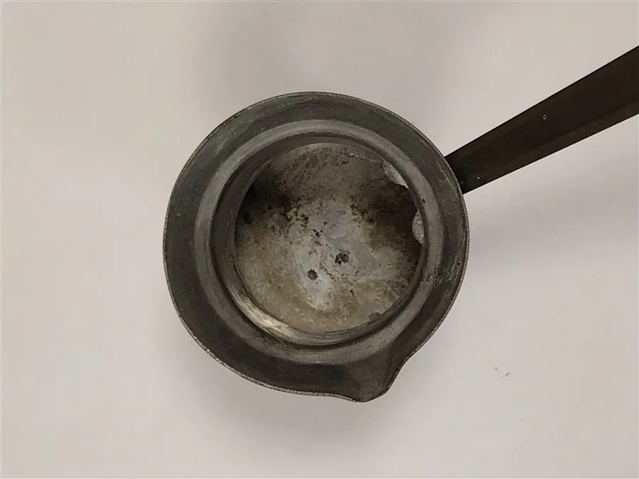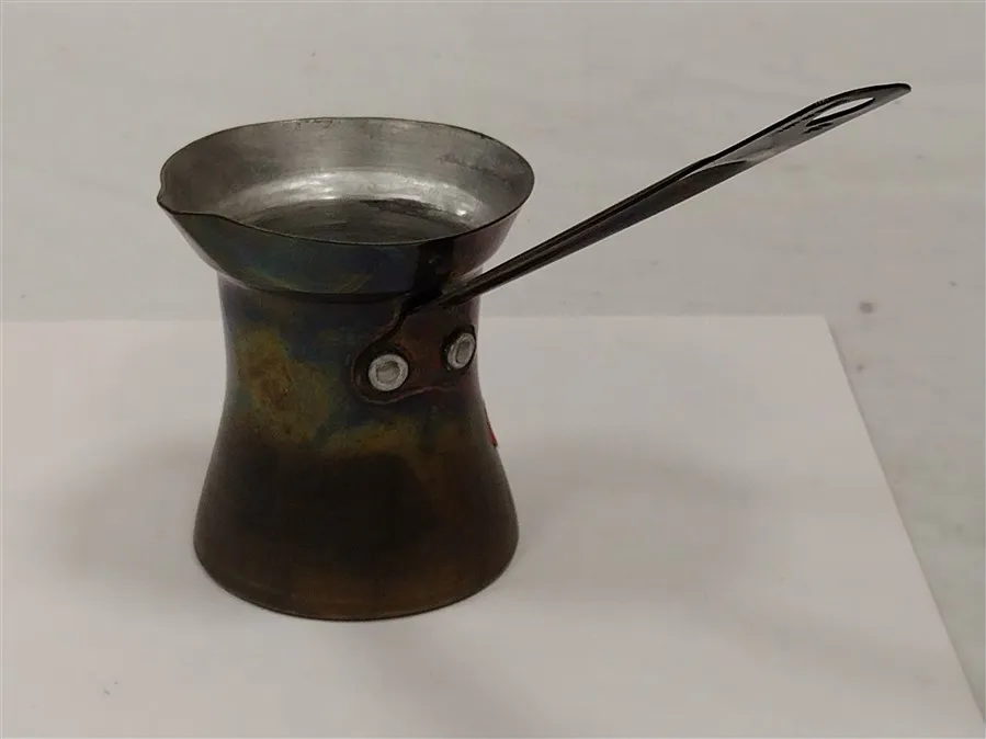 COLLECTIBLES: COPPER WASHED TIN SAUCE POT, CAMPING UTENSILS, TWO BOOT HOOKS AND MORE